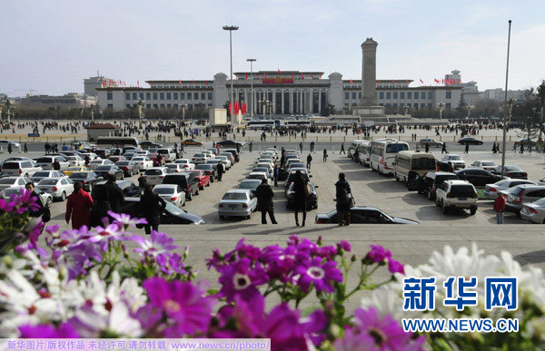 3月1日,人民大會堂東門外的廣場。十一屆全國人大第四次會議、全國政協十一屆四次會議即將開幕。新華網 翟子赫 攝