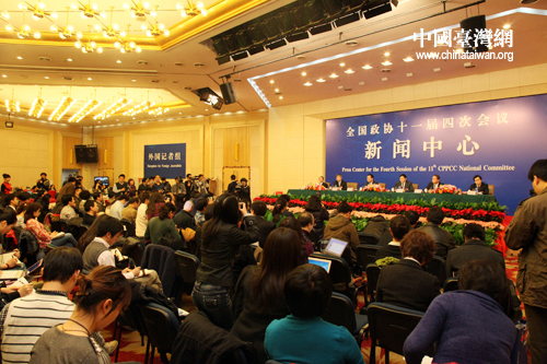 全國政協(xié)十一屆四次會議在梅地亞兩會新聞中心舉行記者會。