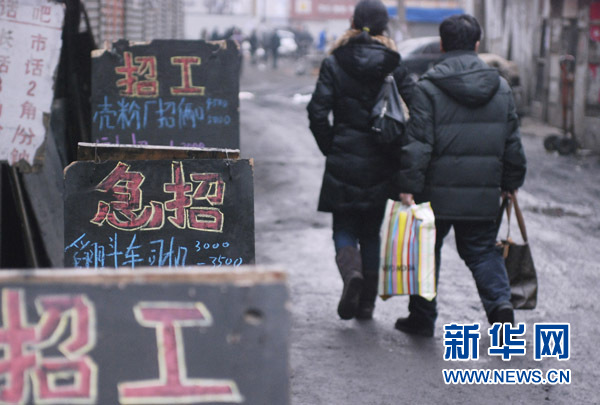2月23日,沈陽市一街道旁擺了幾塊招工信息板。新華社發(李雨澤 攝)