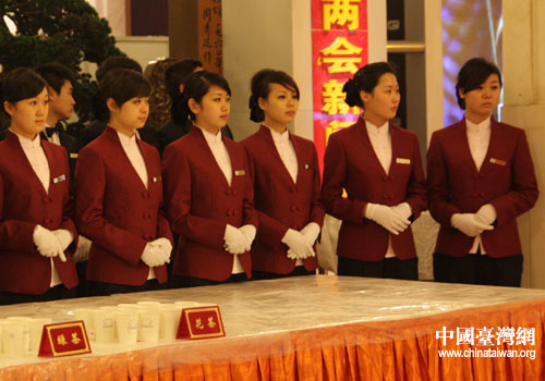 人民大會堂內(nèi)茶歇處服務人員。(中國臺灣網(wǎng) 高斯斯 攝)