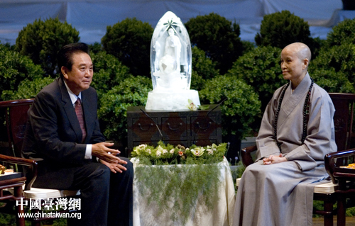 陳云林首先為慈濟對四川汶川地震災區(qū)同胞的無私援助,向證嚴法師表示感謝。