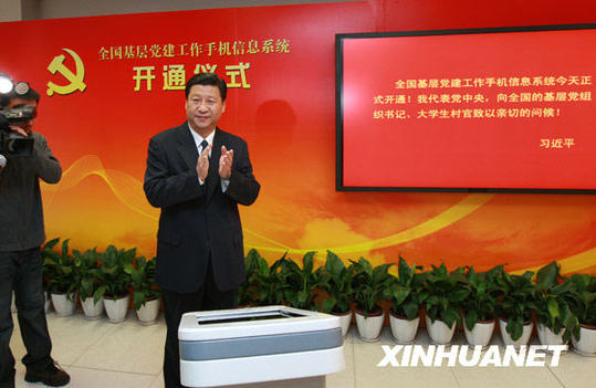 1月5日,中共中央政治局常委、中央書記處書記、國(guó)家副主席習(xí)近平在北京出席全國(guó)基層黨建工作手機(jī)信息系統(tǒng)開通儀式。新華社記者 龐興雷 攝