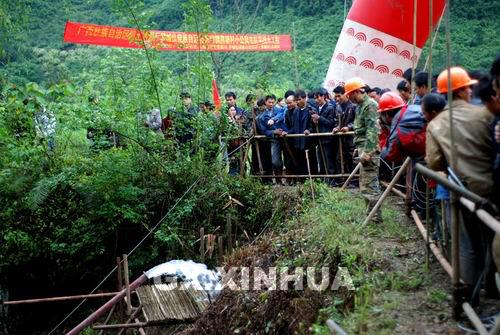 在全區(qū)抗旱找水建設(shè)示范點——廣西羅城縣東門鎮(zhèn)燕塘村小公鳳屯地下河天窗水源點,廣西礦業(yè)建設(shè)公司抗旱施工突擊隊經(jīng)過11個晝夜的奮戰(zhàn),搭設(shè)鋼管腳手架轉(zhuǎn)運平臺4個、洞內(nèi)鋼管爬梯80米,安裝深水潛水泵1臺及抽水管、電纜130米,最終成功提水,受到了上級及人民群眾的一致好評。該提水設(shè)施的完工,使得該水源點具備日出水量1200噸的能力,可解決羅城縣周邊17個自然屯4800多人的生活飲用水、2500畝以上農(nóng)田灌溉用水的問題。(盧寧)