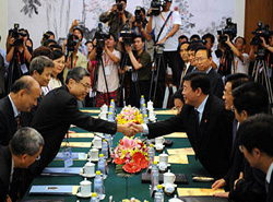 海協會會長陳云林與海基會董事長江丙坤舉行會談