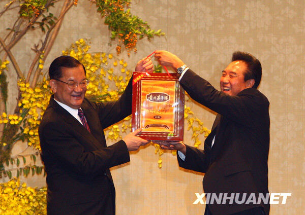 新華網臺北11月4日電(記者陳斌華 趙博)中國國民黨榮譽主席連戰4日晚在臺北設宴歡迎海協會會長陳云林及其率領的海協會協商代表團一行。