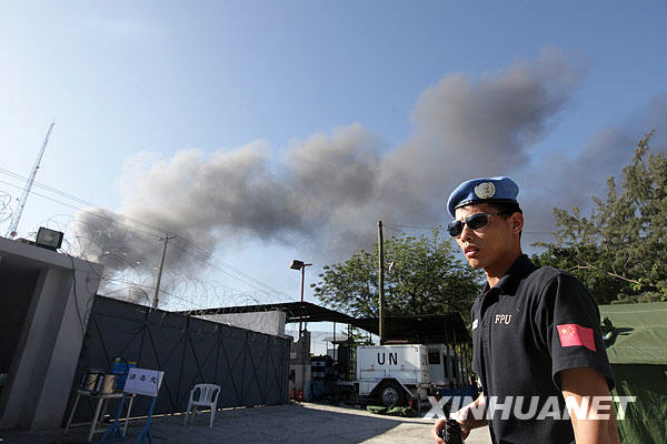 1月18日,在海地的太子港,中國(guó)駐海地維和警察防暴隊(duì)后門外500米處發(fā)生火災(zāi),冒出滾滾黑煙。由于建筑物遮擋,看不到現(xiàn)場(chǎng)具體情況,黑煙大約持續(xù)了15分鐘,目前已經(jīng)消失。據(jù)中國(guó)國(guó)安部消防局同志現(xiàn)場(chǎng)觀察判斷,為一般建筑物火災(zāi)。新華社記者邢廣利攝