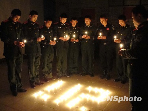 1月19日,在海地地震中遇難的八名中國籍維和人員遺體運返回國。圖為18日晚福建平潭邊防官兵自發組織對死難的戰友進行默哀和對海地正在受難的人們祈禱祝福。中新社發 黃煜情 攝