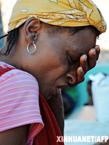 1月22日,在海地首都太子港,一位頭痛的婦女在一家以色列急診診所等待就醫(yī)。國際紅十字組織官員當(dāng)日說,海地地震災(zāi)區(qū)目前已開始出現(xiàn)腹瀉、破傷風(fēng)、流腦、呼吸道疾病等病癥。在太子港災(zāi)區(qū),一些地方已開始進(jìn)行清掃、消毒、接種等災(zāi)后防疫工作。新華社/法新