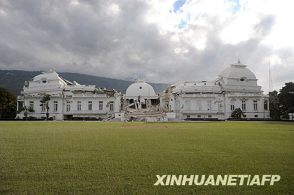 1月13日,位于海地首都太子港的總統府在地震中遭到嚴重損毀。新華社/法新