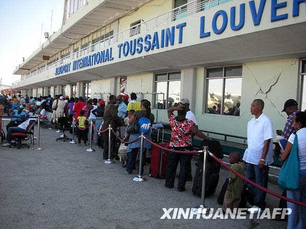 1月17日,人們在海地首都太子港機(jī)場排長隊(duì)等候乘飛機(jī)離開。當(dāng)?shù)貢r(shí)間1月12日,海地發(fā)生里氏7.3級地震,造成重大人員傷亡。新華社/法新