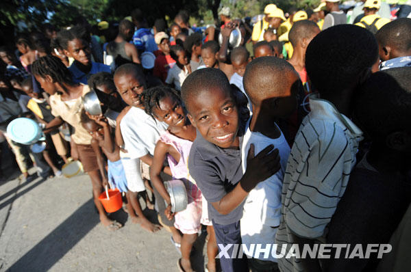 1月20日,在海地首都太子港,孩子們排隊(duì)領(lǐng)取食物。 1月12日,海地發(fā)生里氏7.3級地震,造成人員傷亡和重大財(cái)產(chǎn)損失。國際社會(huì)紛紛伸出援手,向海地提供人道主義援助。新華社/法新
