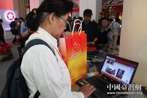 北京市民潘文建女士認為用電子技術(shù)展示兩岸關(guān)系60年發(fā)展變化新穎便捷(中國臺灣網(wǎng) 鐘寶華 攝)