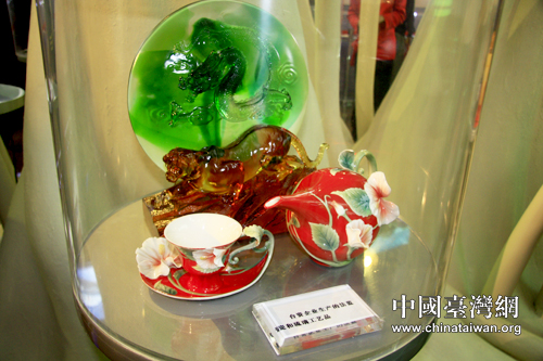 在“兩岸關(guān)系發(fā)展展區(qū)”內(nèi)展示的由臺資企業(yè)生產(chǎn)的琉璃工藝品(中國臺灣網(wǎng) 李徽 攝)