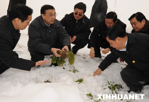 這場罕見的雨雪使農作物受損嚴重。在達州宣漢縣、巴中通江縣、廣安鄰水縣等地,李克強冒雪深入農田、菜地,心情沉重地察看農作物和蔬菜受災情況。他到貧困戶家中摸糧缸看水缸,并和當地干部現場商討恢復生產問題,強調要及早謀劃,做好生產自救的各項準備,并適時進行結構調整。