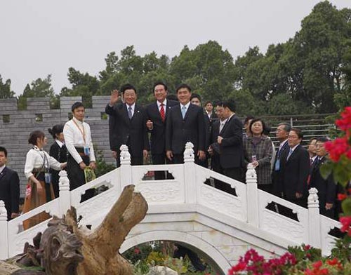 陳云林等一行人離臺(tái)前參觀臺(tái)北花博,花博9點(diǎn)開園,陳云林參觀時(shí)間特地提早一個(gè)小時(shí),8點(diǎn)多就到花博園區(qū),陳云林先逛圓山園區(qū)爭艷館,再到大陸參展的西安庭園及上海豫園,陳云林與海基會(huì)長江炳坤、臺(tái)北市長郝龍斌還特地在上海庭園的造橋上拍照留戀,接著參觀流行館及花博最熱門的夢想館。