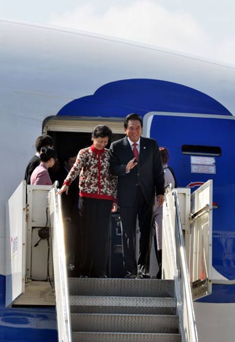 大陸海峽兩岸關(guān)系協(xié)會(huì)會(huì)長(zhǎng)陳云林等人,今天(20日)中午搭機(jī)抵達(dá)桃園機(jī)場(chǎng)。陳云林直接下機(jī),他向守候媒體及接機(jī)人員揮手。海峽交流基金會(huì)副董事長(zhǎng)高孔廉等人前往接機(jī),現(xiàn)場(chǎng)并有大批媒體守候。 “中央社”圖