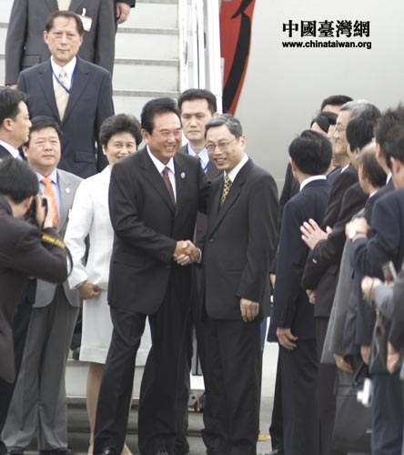 以海協(xié)會(huì)會(huì)長陳云林為團(tuán)長的海協(xié)會(huì)協(xié)商代表團(tuán)3日中午乘坐包機(jī)抵達(dá)臺(tái)灣桃園機(jī)場(chǎng)。;鶗(huì)秘書長高孔廉以及;鶗(huì)相關(guān)負(fù)責(zé)人前往機(jī)場(chǎng)迎接。中國臺(tái)灣網(wǎng) 田云鵬攝