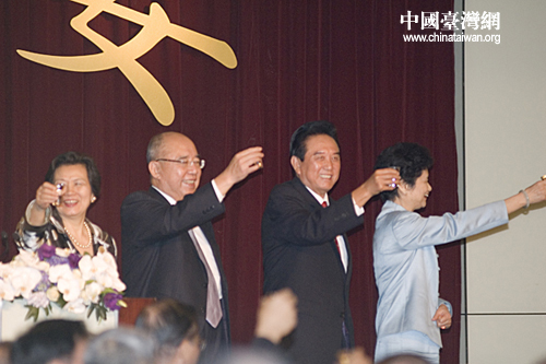 海峽兩岸關(guān)系協(xié)會(huì)6日晚在臺(tái)北市圓山飯店舉行答謝晚宴,感謝;鶗(huì)董事長及海基會(huì)主要工作人員。陳云林致辭后賓主共同舉杯慶祝。田云鵬 攝