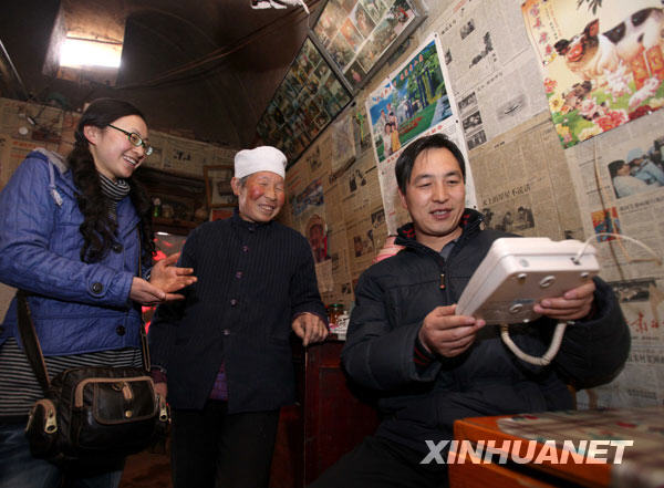全國人大代表畢紅珍(左一)和她的丈夫、小學(xué)教師羅老師為安裝無線座機(jī)的鄉(xiāng)親做售后服務(wù)(2月24日攝)。