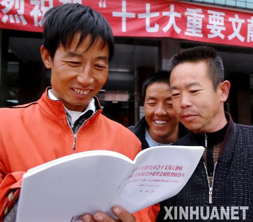 10月28日,幾位市民在翻閱剛購買的十七大報(bào)告單行本。