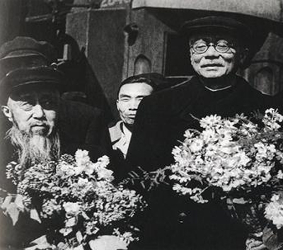 圖片說明:1951年4月6日至5月29日,林伯渠、沈鈞儒分任中蘇友好協(xié)會赴蘇參加“五一”節(jié)觀禮代表團正負副團長,率團對蘇聯(lián)進行參觀訪問。圖為代表團在莫斯科車站受到熱烈歡迎。前排左為沈鈞儒,右為林伯渠。
