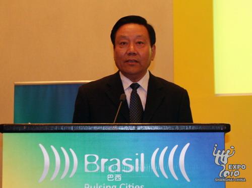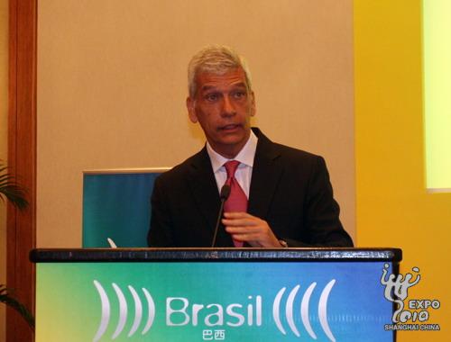 巴西貿易與投資促進局主席、世界投資促進機構協會主席兼上海世博會巴西館總代表亞歷山德羅?特謝拉介紹展館情況