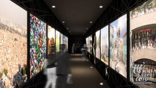 城市風光展廳將包括170平米的城市風情隧道,在這里,192塊不同尺寸的液晶顯示器將形成一個壯觀的大型液晶電視墻,通過變化的圖像向參觀者展示信息技術與城市發展、文化平等與城市復興等主題和城市風情,以及圍繞2014年世界杯各主辦城市相關旅游景點而展開的主題活動等內容。參觀者可以觸摸甚至轉動屏幕,看到不同角度的城市風貌。