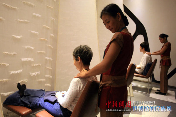 免費的“菲律賓傳統按摩”,無疑是菲律賓館吸引眾多游客的“另類利器”。此前早有媒體透露了這一熱選內容,而今興沖沖特地來到按摩區,欲親身體驗菲式按摩的“超級享受”。未料工作人員抱歉告知,一大早名額就全部預約光了。一位按摩師稱,菲律賓傳統按摩融合了中式穴位按摩技法,對緩解疲勞、舒緩身心大有裨益。