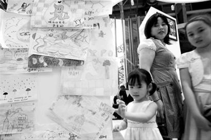 展館專門辟出一個“孩童角”,鼓勵參觀的孩子們用畫筆暢想未來。 (張海峰 攝)