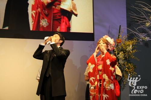 不久前,法國圖爾市在世博會(huì)上舉行了浪漫的法國婚典;3日下午,作為橫濱周活動(dòng)之一,世博園又迎來了一場(chǎng)具有濃郁東方氣息的傳統(tǒng)日式婚禮。
