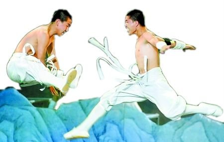 少林武僧正在表演專門為上海世博會打造的原創(chuàng)舞臺劇《少林寺之武僧傳奇》。新華社發(fā)