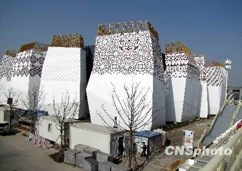俄羅斯館的主題為“新俄羅斯:城市與人”。展館由12座紅色、金色和白色的不規則塔樓包圍而成,在俄羅斯文化中,紅、金、白三色分別代表美麗、繁榮和純潔,塔樓上富于俄羅斯民族特色的鏤空雕刻圖案是該國家館的標志性外觀設計。