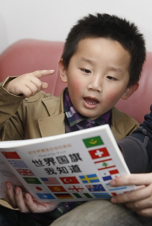 東方網(wǎng)5月13日消息:據(jù)《東方早報》報道,家住浦東的陳思捷小朋友今年3歲,是個活潑可愛的小男孩。和同齡人不同的是,他有一手“看國旗識國家”的絕活。據(jù)他的家人介紹,小思捷能夠辨認(rèn)近200個國家的國旗,還能說出國旗代表的國家及其首都。小思捷告訴記者:“我要去世博園里認(rèn)國旗!