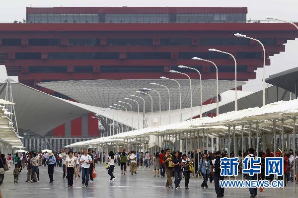 6月5日,游客經過世博園浦東園區的人行步道。 新華社記者裴鑫攝