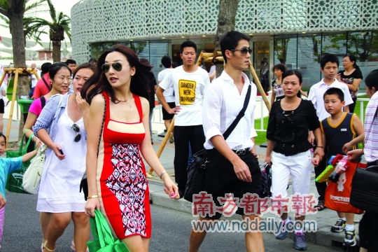 剛剛打完乒超常規賽的王勵勤昨天和一紅衣美女同游上海世博會,兩人走出沙特館后都迅速戴上墨鏡,并保持至少一米的距離。與他們同行的還有王勵勤的父母及另一名年輕女子,那名年輕女子見到記者拍照,馬上上前阻止。(南方都市報)