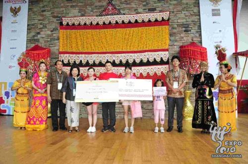 11日,上海世博會印度尼西亞館迎來第600萬名游客,來自蘇州的葉珍、葉心怡母女成為印尼館今天的“超級明星”。印尼館館長維德爾瑪·拉亞、印尼商貿部長馮慧蘭向這對母女贈送了禮品,包括“上海-雅加達-巴淡-民丹”的往返機票、3天2夜雅加達五星級酒店住宿及用餐,以及2張印尼館Enak!餐廳的免費就餐券。