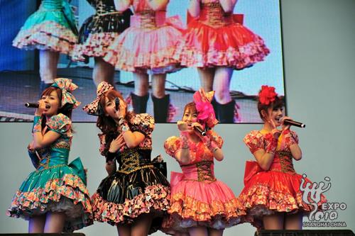 世博網10月29日消息:28日下午, 日本產業(yè)館的JAL舞臺迎來了“Ex-Ceed”樂隊。該樂隊是由4名早安少女組成員——久住小春、夏雅燒、純純和琳琳組成,其樂隊名是特別為來上海世博會演出所征集的。這是該組合自今年六月首次在日本產業(yè)館JAL舞臺上演出之后,第二次在世博會進行演出。演出中,“Ex-Ceed”樂隊演唱了數(shù)首耳熟能詳?shù)母枨。最后,用中文演唱了經典老歌《茉莉花》,把演出推向了高潮,博得了臺下陣陣喝彩。 (作者:鄒曈 攝影:鄒曈)
