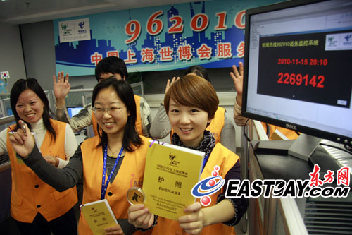 圖片說明:從2007年5月17日開通至今,世博熱線總呼入量逾227萬次