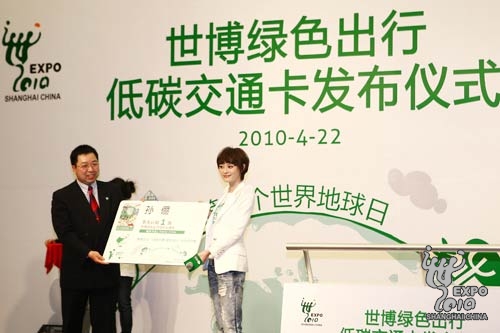 世博網(wǎng)4月22日消息:今天是第41個(gè)世界地球日,全球首款低碳交通卡——“世博綠色出行低碳交通卡”在上海正式發(fā)布。發(fā)布儀式上,著名影星孫儷第一個(gè)購(gòu)買了世博綠色出行低碳交通卡,并宣讀了世博綠色出行倡議書。