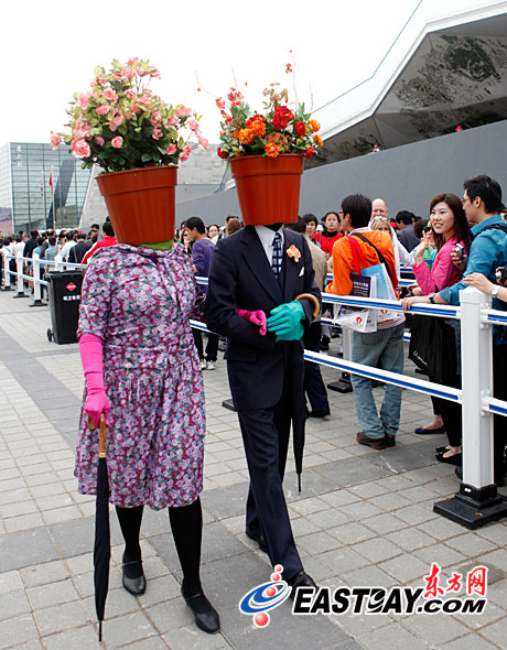 精彩紛呈的世博會(huì),吸引了八方游客前來觀展。穿梭在展館之間的行為藝術(shù)表演,也是觀眾不容錯(cuò)過的節(jié)目。更有觀眾自發(fā)上陣,支持世博,堪稱一絕。圖為在德國館前,行為藝術(shù)表演者吸引眾多觀眾駐足觀賞。(記者:劉歆?攝)