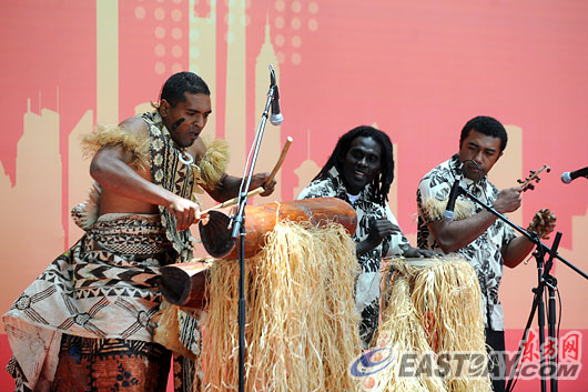 在簡(jiǎn)短的儀式之后,來(lái)自大洋洲的演員們和來(lái)自法屬波利尼西亞的舞蹈表演者還獻(xiàn)上了精彩的演出,飛揚(yáng)的裙擺和忘情的吶喊把島國(guó)的淳樸熱情釋放得淋漓盡致。