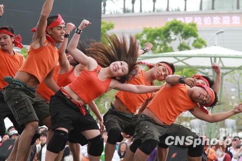 5月13日,菲律賓藝術家們在上海世博園亞洲廣場表演現(xiàn)代舞蹈,表達菲律賓人民富有活力的現(xiàn)代生活。