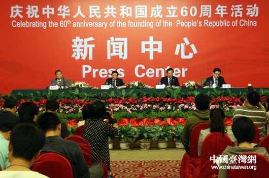 29日下午,國慶新聞中心召開發(fā)布會(huì),上海世博會(huì)組委會(huì)委員、組委會(huì)聯(lián)絡(luò)小組常務(wù)副組長、中國貿(mào)促會(huì)副會(huì)長王錦珍與上海市常務(wù)副市長、世博會(huì)執(zhí)委會(huì)常務(wù)副主任楊雄介紹了2010年上海世博會(huì)的各項(xiàng)籌備情況,并回答記者提問。(中國臺(tái)灣網(wǎng) 鐘寶華 攝)