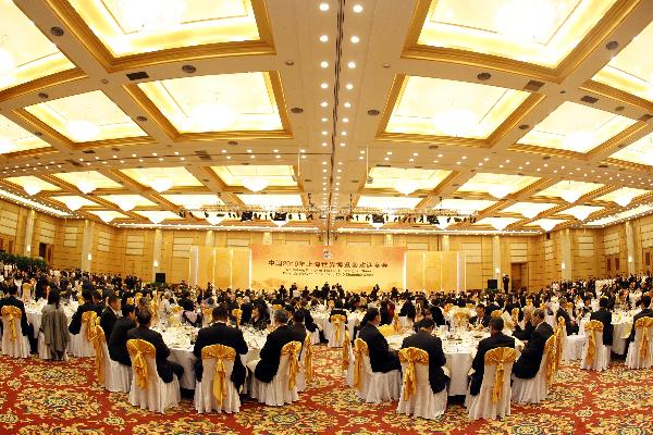4月30日晚,中國國家主席胡錦濤在上海國際會議中心舉行宴會,歡迎前來出席上海世博會開幕式的貴賓。 新華社記者 丁林 攝
