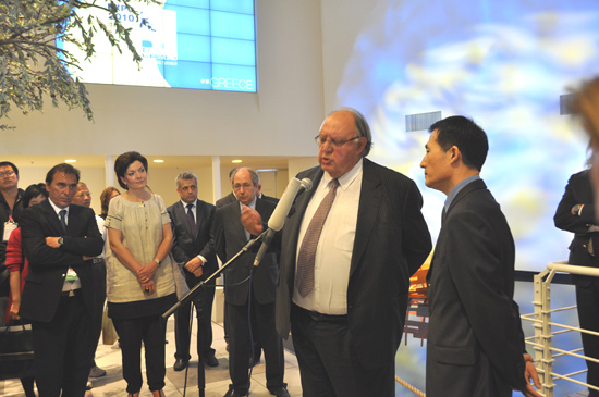 人民網上海5月2日電 (記者 燕勐)5月1日下午,上海世博會希臘館在世博園區舉行了開館儀式,希臘副總理塞奧多洛斯·潘加洛斯及夫人、希臘駐華大使塞德羅斯·耶奧卡凱羅斯、希臘駐滬總領事瑪里亞?薩蘭蒂等出席儀式。