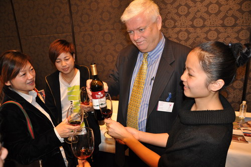 據主辦方有關部門負責人蔣宏偉小姐介紹,此次安夏酒聯(寧波)公司來上海舉辦這一活動,主要是外商特別看好“后世博”的上海葡萄酒市場,這些首次在中國“亮相”的酒莊葡萄酒,是剛剛從這些國家進口的,主要是想讓愛喝葡萄酒的上海朋友“找找感覺”。