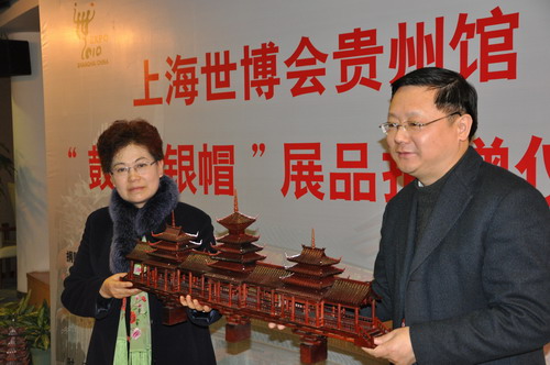 海峽之聲網上海12月23日電(記者張玉龍)今天中午,上海世博會貴州館的“侗族鼓樓”、“苗族銀飾”捐贈儀式在上海世博局舉行,代表黔東南苗侗文化元素的“鼓樓”、“銀飾”將被正在籌建中的上海世博會博物館永久保存。上海世博局副局長朱詠雷、中共黔東南州委副書記韓卉出席儀式并致辭。