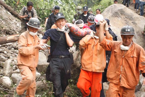 17日早上9點多,位于四川德陽什邡市紅白鎮(zhèn)的深圳特警救援隊接到任務:在離紅白鎮(zhèn)幾十里外的山溝里有一個倉庫,倉庫內有重要的國家物資需要轉移。特警隊8名隊員和解放軍某部的3名戰(zhàn)士立即組成武裝分隊,向倉庫方向發(fā)進。通往倉庫的路全毀了,他們只能徒步翻越幾座山才能到達。