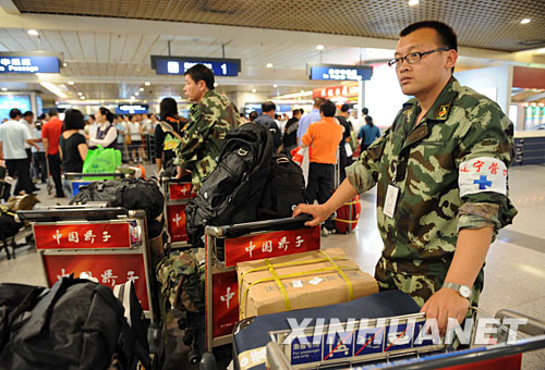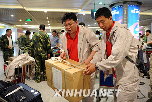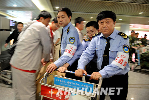 當日,來自遼寧省沈陽市、盤錦市、丹東市、鐵嶺市等地衛(wèi)生防疫系統(tǒng)的108名救災隊員飛抵成都,準備投入地震災區(qū)一線的防疫工作。 新華社記者張領攝