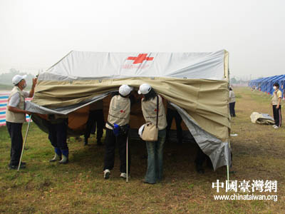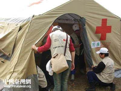 20日下午,臺(tái)灣紅十字組織醫(yī)療隊(duì)帶約3噸醫(yī)療用品等物資前往廣漢市,21日在高坪鎮(zhèn),23日在體育場(chǎng)救災(zāi)點(diǎn)設(shè)立醫(yī)療救護(hù)站,展開(kāi)救護(hù)服務(wù)。救護(hù)站設(shè)有中、西醫(yī)。從21日至24日共計(jì)診治476名。對(duì)數(shù)十名老弱災(zāi)民進(jìn)行體檢,做了一臺(tái)氣胸手術(shù)、兩個(gè)骨折手術(shù)。和一個(gè)頭皮縫合小手術(shù)。內(nèi)、外科,兒科,針灸,急處方發(fā)藥點(diǎn)。巴蜀音像制作中心 蘭志泉 攝